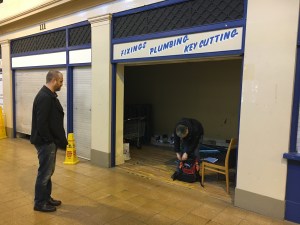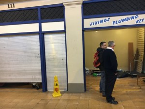 Initial visit to the vacant unit with Peter (sound), Jason (technician) and Steve (Grainger Market Inspector) in preparation for the March 24th performance of Arcadia.